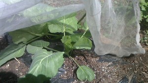 寒冷紗をかけて育てている白菜です。